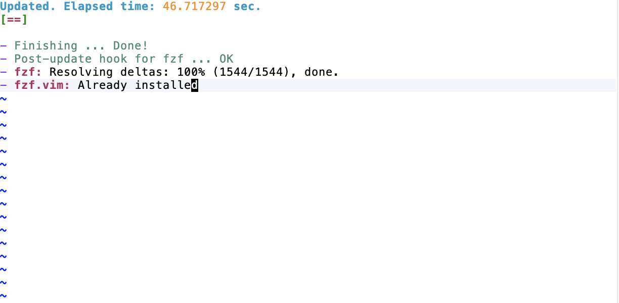 使用 :PlugInstall 对进行安装,如下表示安装完成。