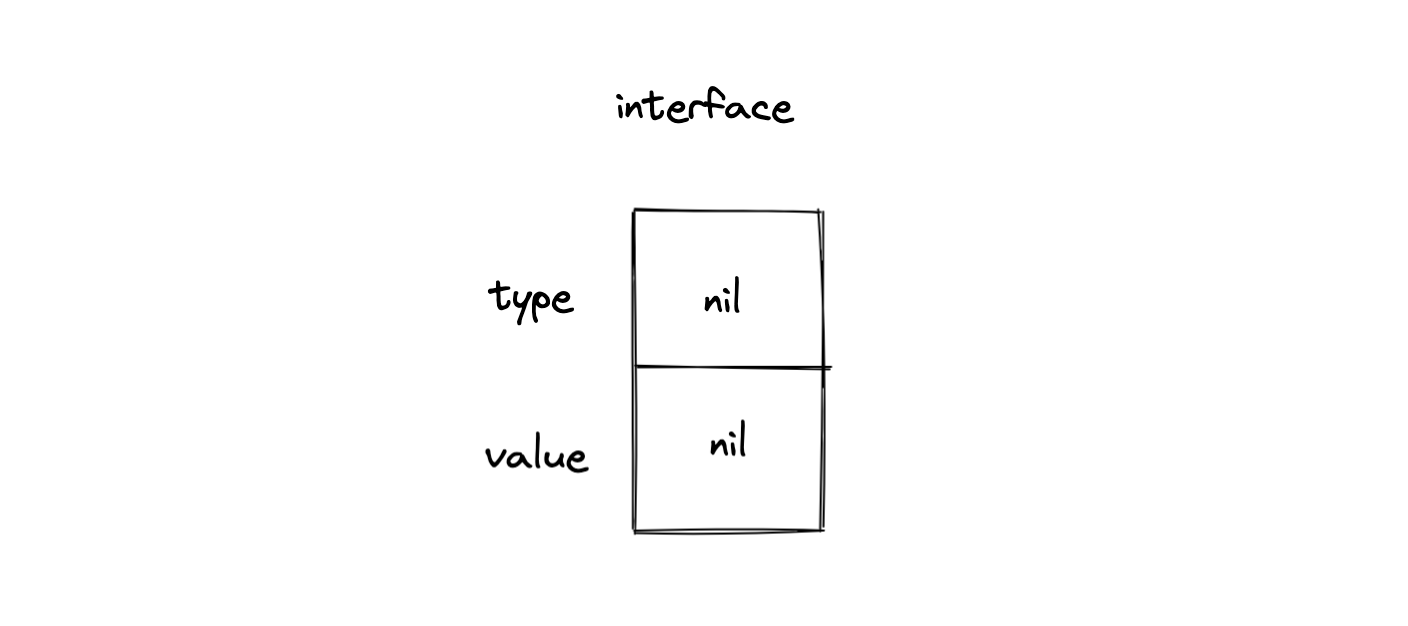 inteface 的接口与上面的类型都不一样,interface 由两部分组成,一部分是接口的类型,另一部分是接口的值: