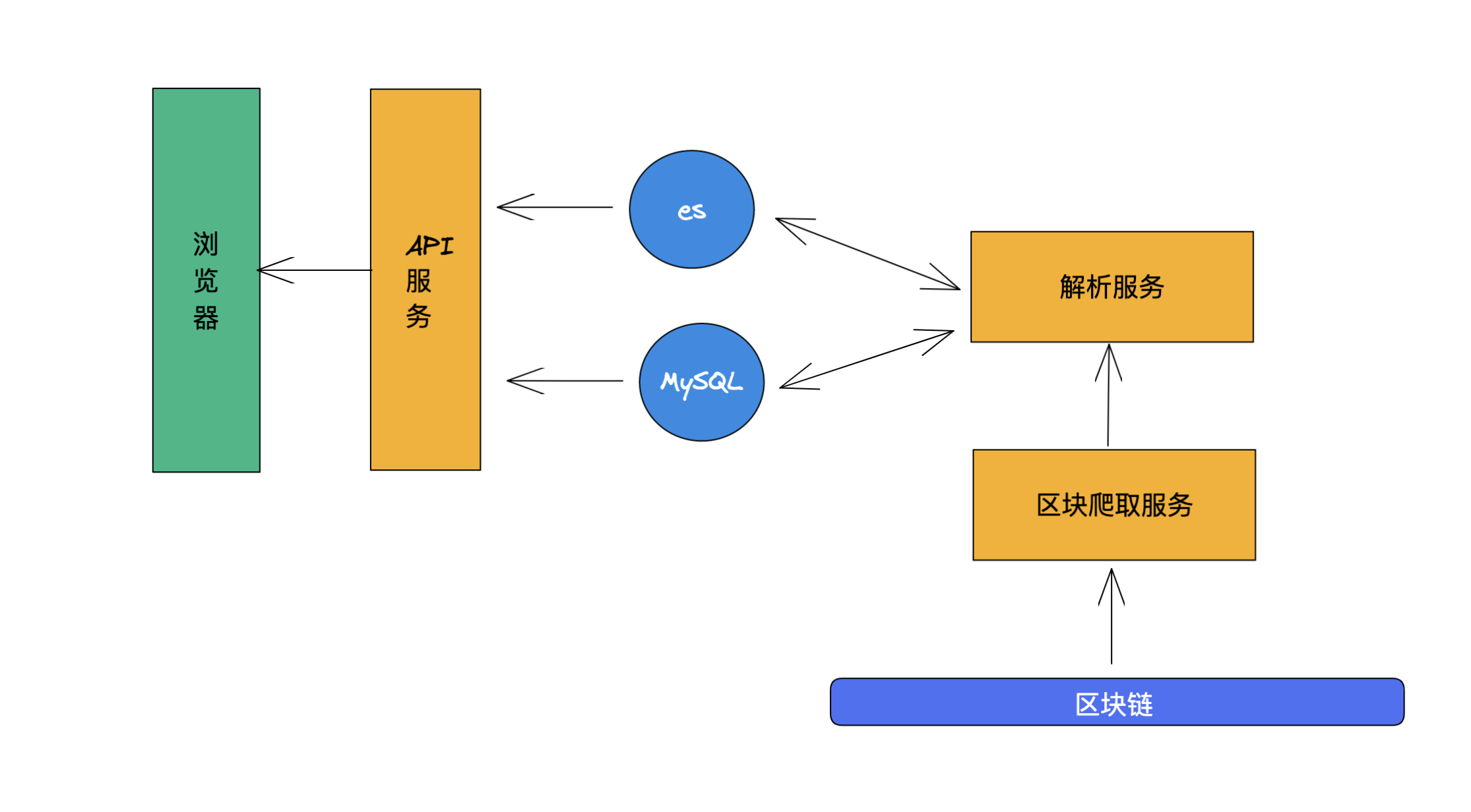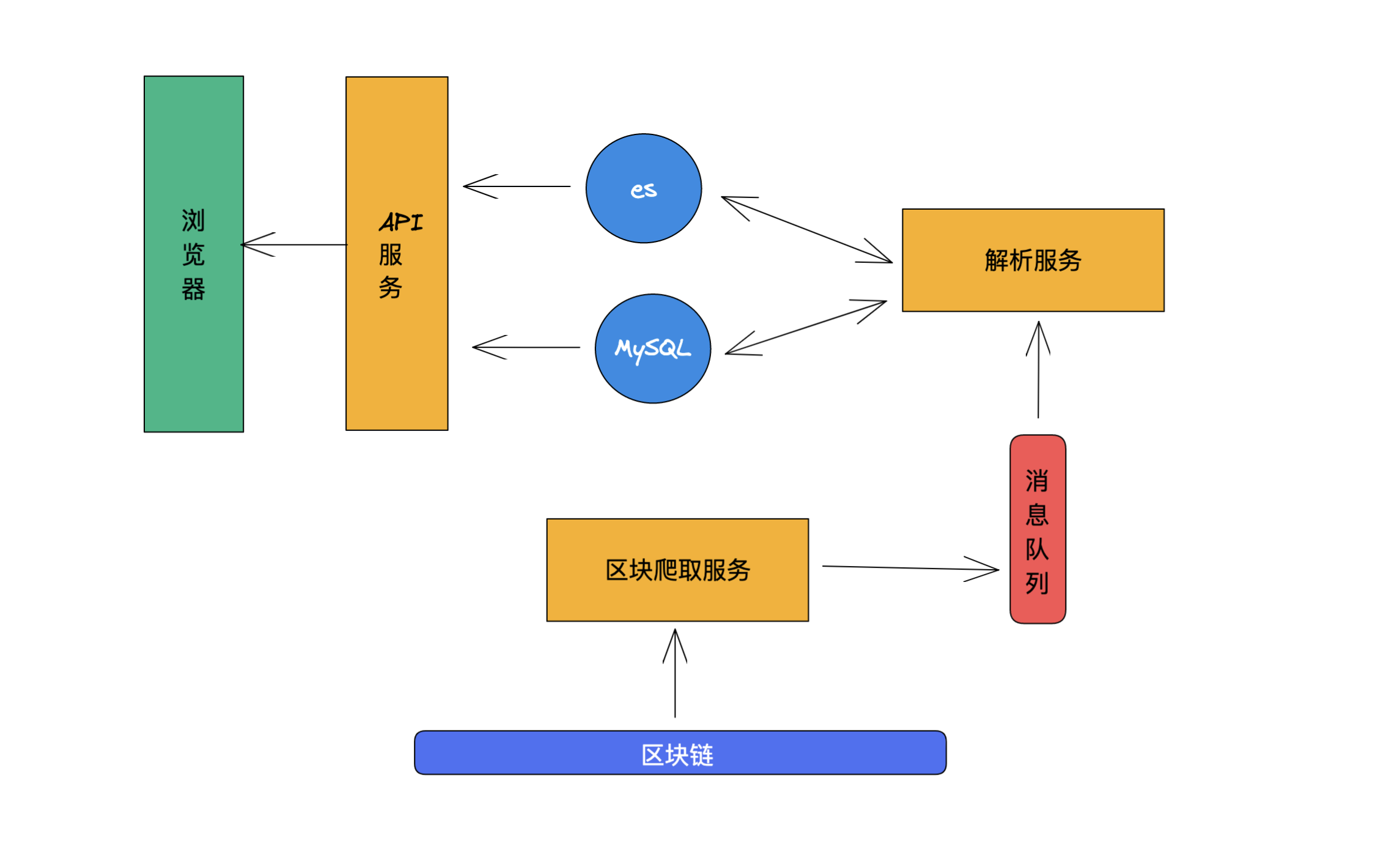 整个系统做的事情就是将区块链上的数据拉取下来,放到数据库中,然后通过一个 API 服务