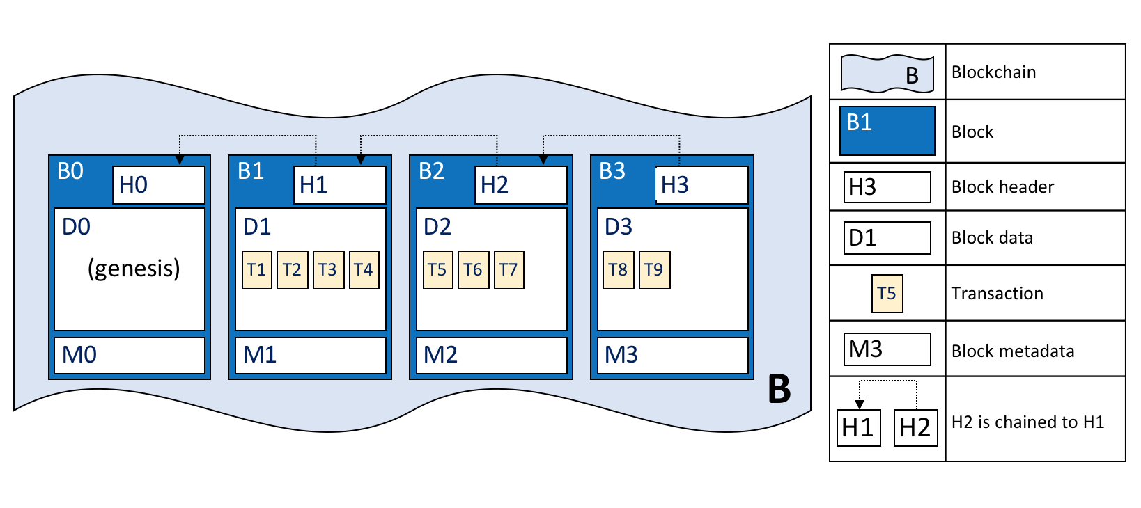 区块链就是一个链状的结构,所有的区块通过计算前一个区块的 hash 连接在一起: